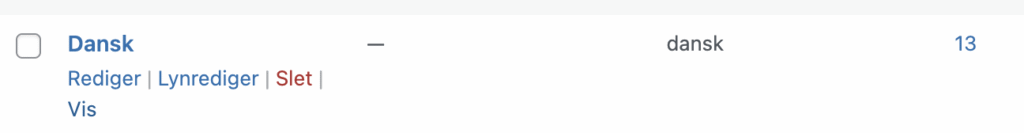 Åbn: Kontrolpanel > Indlæg > Kategorier