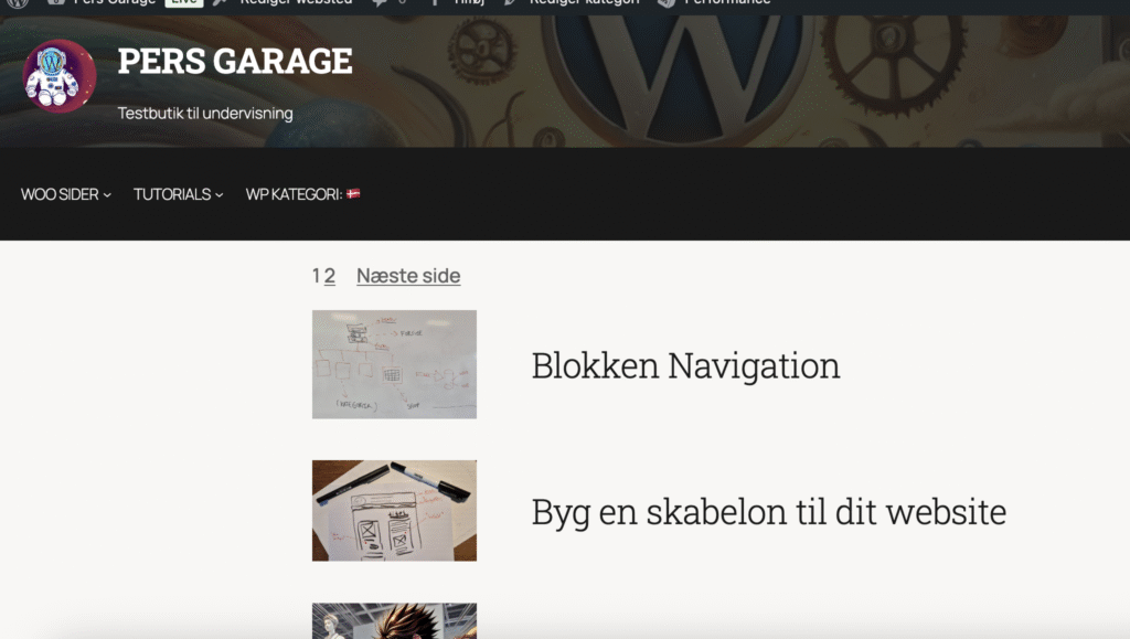 Klik på “Vis” og så åbner WP en side i kategorien: