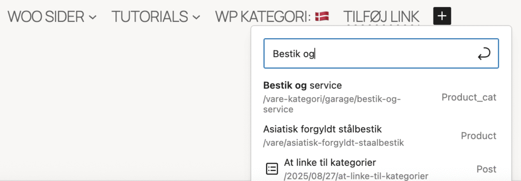 Det er relativt enkelt at linke til kategorier – både i den almindelige WP og når det gælder Woo’s kategorier.