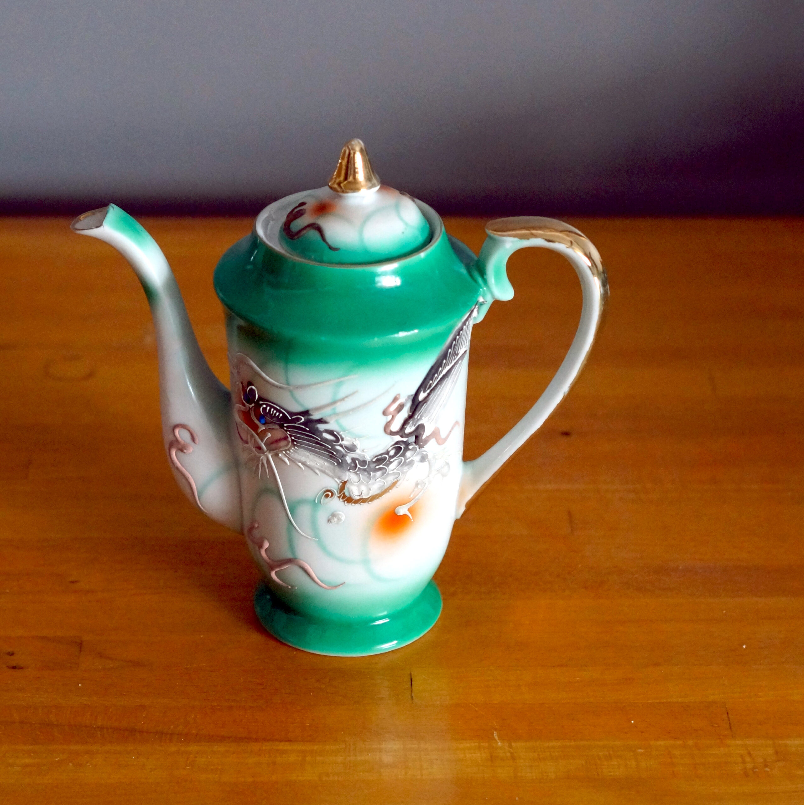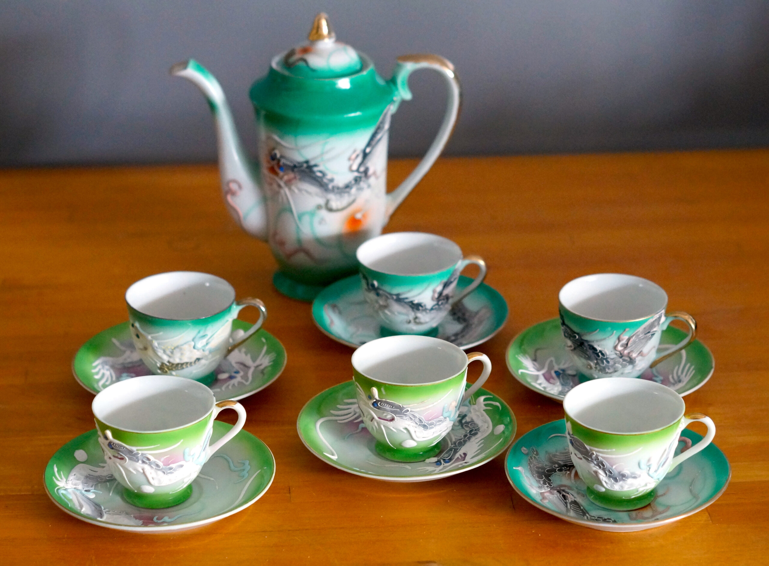 Kande og kopper med dragemotiv fra Kina.